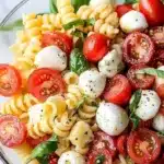 Moreover, this dish is versatile and can be tailored to your liking. Whether you want to add some grilled chicken or make it entirely vegetarian, Colorful Caprese Pasta Salad can meet your needs. The best part is that it can be made ahead of time, making it a handy option for meal prep or gatherings.