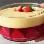 Prepare the Custard: While the jelly is setting, you can prepare the custard. If you are using a custard powder, follow the instructions on the package. Typically, you’ll need to mix the powder with milk and sugar, then heat it gently while stirring until it thickens. If you prefer homemade custard, you can make it using eggs, milk, and sugar. Allow the custard to cool after preparation.