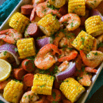 A classic Southern-style shrimp boil loaded with tender shrimp, corn on the cob, baby potatoes, and smoky sausage all boiled in a flavorful spiced broth and served family-style for the ultimate crowd-pleaser.